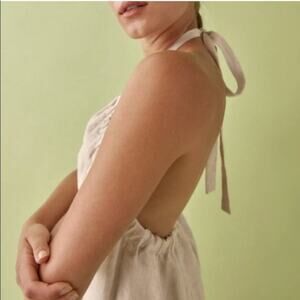 Tags: linen, cotton, mini dress, summer, sundress, halter, open back, ivory, beach, garden, party, event, cocktail, casual, resort, vacation, holiday, island, hawaii, hawaiian, festival, pool, picnic, date, night out, going out, brunch, contemporary,