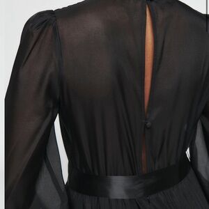 How classic. The Meesha is a semi sheer, midi dress with long, puff sleeves, a back cut out with a double button closure, and a ribbon tie at the waist. The bodice and skirt are both relaxed yet flattering. - Double button closure - Full skirt - Long puff sleeve - Not bra friendly - Ribbon detail - Sheer