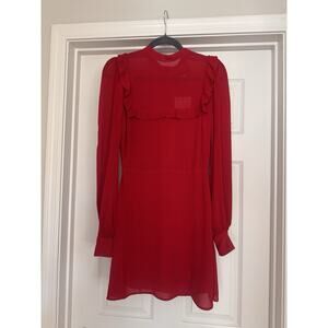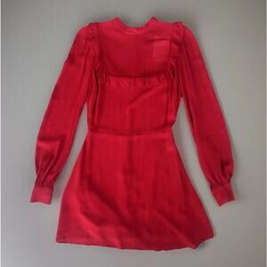 NWT Reformation Mock Neck Ruffle Long Sleeve Red Mini Dress Size 4
