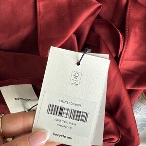 NWT Reformation Naila Satin Dress In Chianti Sz Small Slim Fit Thigh High Slit
