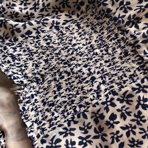 Ankle alert. The Nikita is fitted in the bodice and waist with a relaxed fitting skirt. This midi length dress has a ruffle edged neckline, adjustable strap ties, and a trumpet skirt. It gives you a pretty good balance of comfort and shape.