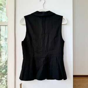 A true wardrobe necessity, the Oakley vest looks great layered or on its own. Featuring a longer peplum-style waist below the buttoned front, its a feminine take on a suiting staple.