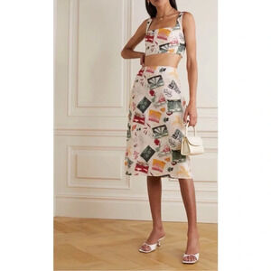 NWT Reformation Primo Two Piece Linen Skirt Set Crop Vacaciones Print White 0