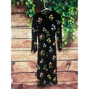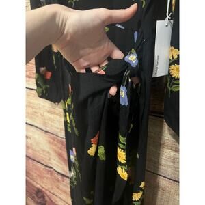 NWT Reformation Reza Midi Dress Night Bloom Long Sleeve Black Floral Wrap