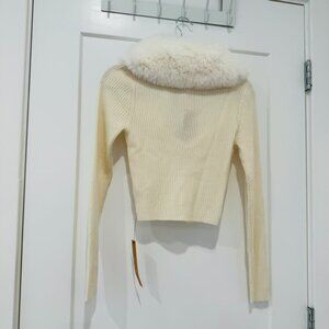 NWT Reformation Riven Cashmere Cardigan Sweater with Faux Fur Lapel