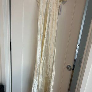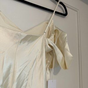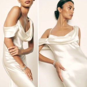 NWT Reformation Ronda Maxi Silk Dress Sz 8 Ivory One Shoulder Low Cowl Neck