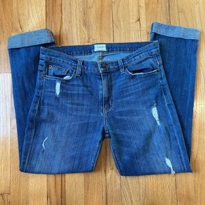 The Fonda Dress from Reformation is slim fitting throughout. This dress is fitted in the bodice with a relaxed, faux wrap skirt. This dress features bust cup detailing and a smocked back bodice for a little bit of stretch.