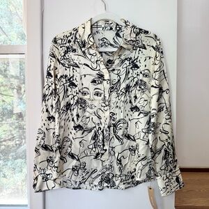 NWT Reformation Sky Silk Top Long Sleeve Button Down Abstract Doodle Vogue XS