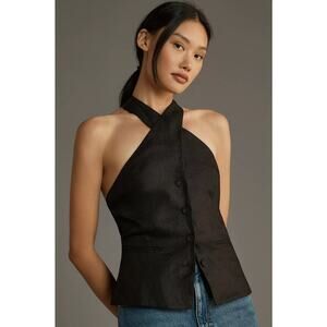 NWT Reformation Tate Linen Top Black Halter Size 10 Button Front
