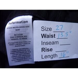NWT Reformation Tatiana Belted Denim Mini Skirt in Black Vana Size 27
