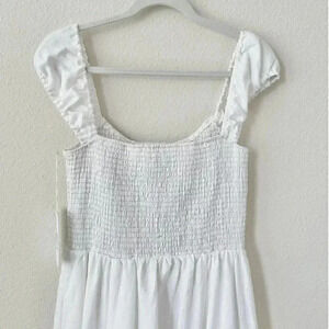 NWT Reformation Tavi 100% Linen White Smocked Ruffle Midi Dress Size Medium