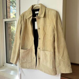 NWT Reformation Veda Lincoln Suede Shirt Jacket in Oat Distressed Tan Small