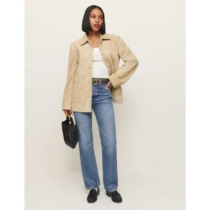 NWT Reformation Veda Lincoln Suede Shirt Jacket in Oat Distressed Tan Small
