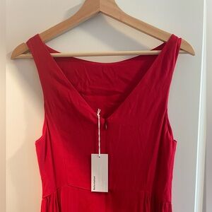 Sleeveless midi dress with a high neckline and drop waist and a v-back and zip.