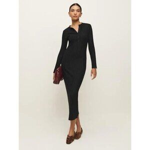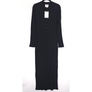 NWT Reformation Women's MEDIUM Lani Knit Maxi Dress Black USA🇺🇸MADE Button Front