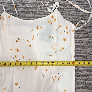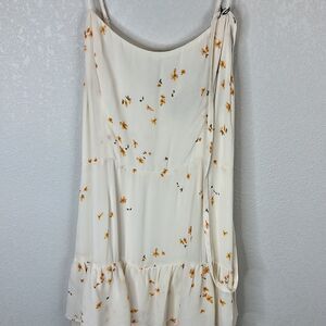 * White tiered gown with yellow flowers.