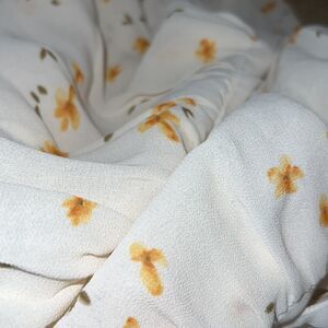Fabric print is foxglove pattern. Lightweight georgette fabric with a dry handfeel.