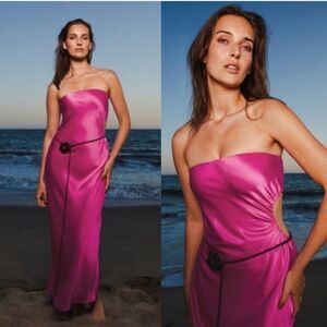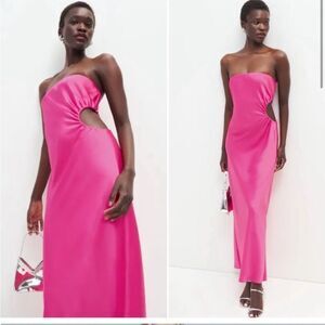 NWT Reformation Navaeh Satin Side Cutout Strapless Midi Bias Dress in Flambe