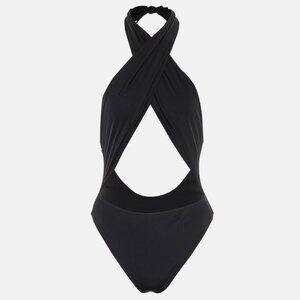 NWT Reina Olga Black Crossover Wrap One Piece Swimsuit