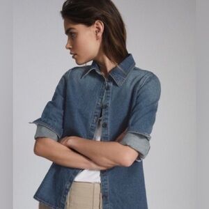 NWT Reiss Amanda Blue Denim Button Down Shirt