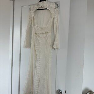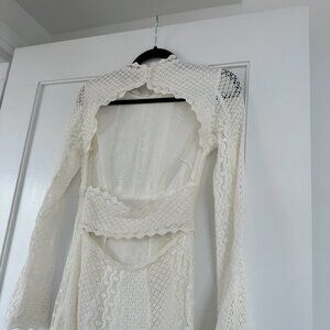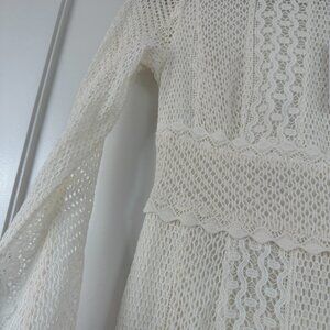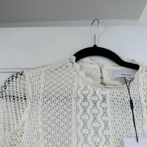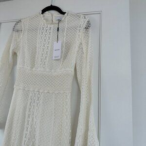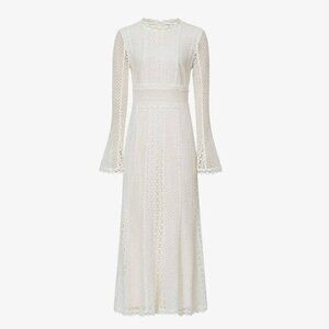 NWT Reiss Aspen Heavy Lace Midi Dress Sz 8 in White Bell Sleeves Cut-out Back