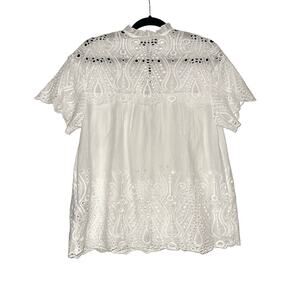 NWT Reiss Aubree Eyelet Short Sleeve Tie Neck White Top