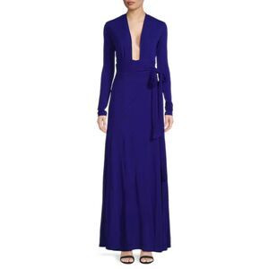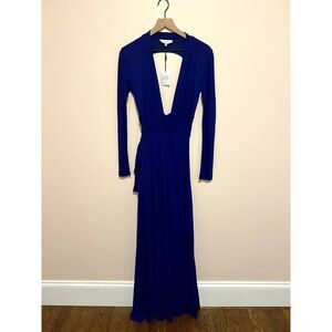NWT Reiss Bailey Plunge Wrap Maxi Dress in Cobalt Blue Women's Size 4