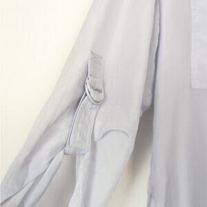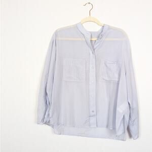 NWT Reiss Giovanna Blue Relaxed Grandad Collar Shirt. The Giovanna shirt in blue is cut from a cotton-silk fabrication to a regular-fitting silhouette and is detailed with a twin-pocket design and a tie-detail to the sleeve. A cool and contemporary piece, it's the perfect partner to jeans and trainers. 62% Cotton 38% Silk.