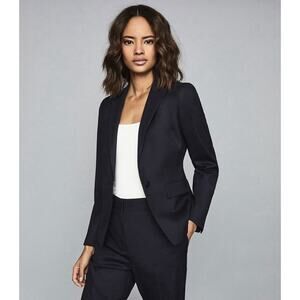 NWT Reiss Hartley Cropped Blazer Jacket Black Wool Blend Size 6