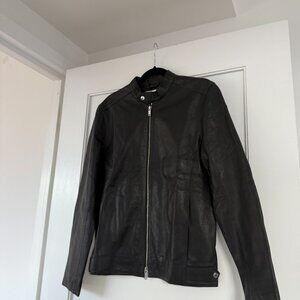 NWT Reiss Keith Cafe Racer Jacket Black Calf Leather Slim Fit Full Zip Sz Small