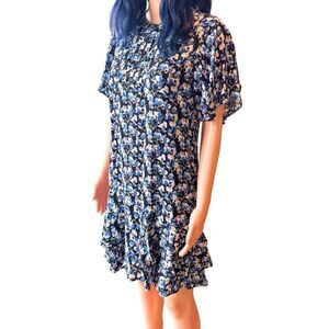 NWT Reiss Lulu Ditsy Flippy Blue Black Floral Mini Dress