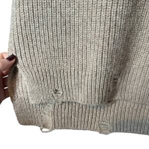Rejina Pyo Sydney Sweater Vest in Oat Alpaca. The Rejina Pyo Sidney Vest in Alpaca Oat is a distressed knitted sweater vest, crafted from soft alpaca wool. Designed for a relaxed fit, the vest is presented with a ribbed V-neckline and hem, and mended detailing.