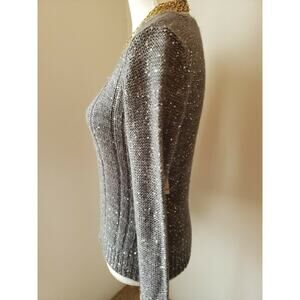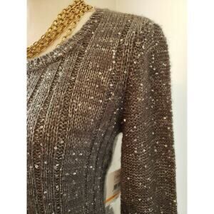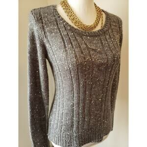NWT Relativity Womens Shimmer and Shine Silver Holiday Sweater Petite Small PS