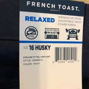 NWT Relaxed fit twill Navy pant 16 Husky French Toast, adjustable waist, Pockets