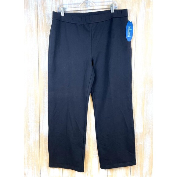 NWT Relaxed by Charter Club Black Yoga Pants Cropped w/pockets Size Petite Large