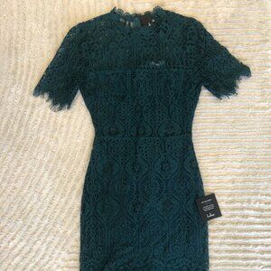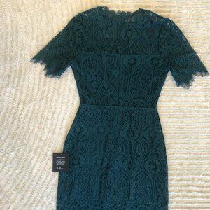 NWT - Remarkable Forest Green Sheer Lace Short Sleeve Mini Dress