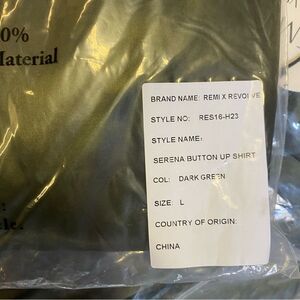 NWT Remi x Revolve Serena button up satin shirt Forrest green blouse L