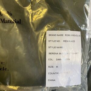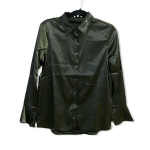 NWT Remi x Revolve Serena button up satin shirt Forrest green blouse M