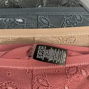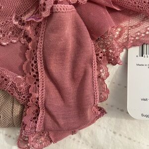 They feature a floral lace design, scalloped trim, and a mesh-lined front and back.