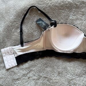 NWT Rene Rofe Cream and Black Lace convertible Bra Size 36C