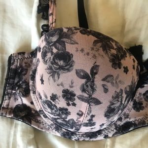 Padded, balconette style bra with frills on the straps. Adjustable in the back like a normal bra.