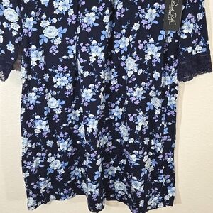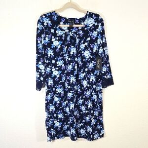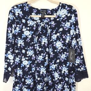 *NWT* Rene Rofe Navy Blue Floral Lace 3/4 Sleeve Nightgown Super Soft Cozy, M