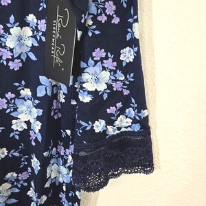 *NWT* Rene Rofe Navy Blue Floral Lace 3/4 Sleeve Nightgown Super Soft Cozy, size Medium. Soft lace detailing on sleeves. Small keyhole opening at neckline. Super soft gown. Brand new with tag.