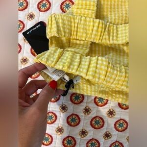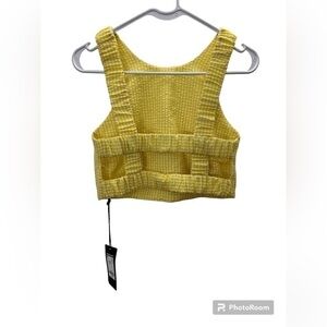 NWT Renuar Yellow & White Picnic Cropped Tank Open Back