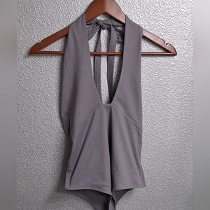 NWT Reo Rea Grey Plunging V Neck Halter Body Suit Size S