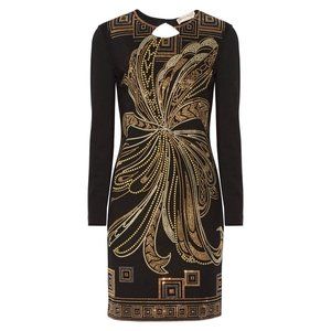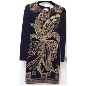 NWT Retail $5215 Emilio Pucci black dress size IT 40 US 4 with signature swirl design in mutilcolor metallic studs