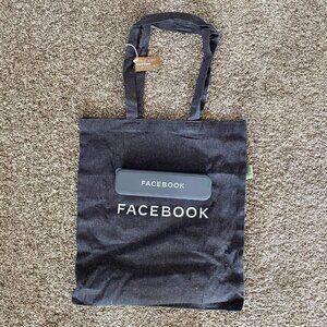 NWT Retired Facebook(Meta) Grey Eco-Friendly Canvas Strap w/ Tableware&Straw Set