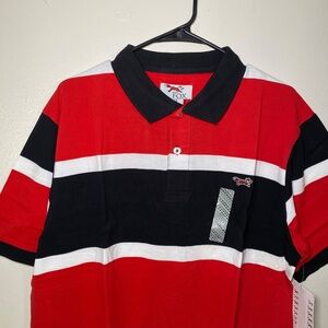 NWT Retro Fox Polo Shirt Adult XL Classic Fit Red Black Striped Golf 100% Cotton
