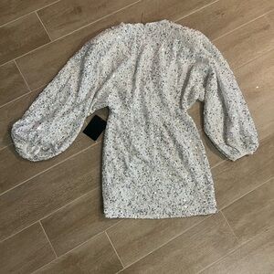 NWT Retrofete Aubrielle Sequin Chiffon Mini Dress - White Silver Size Small