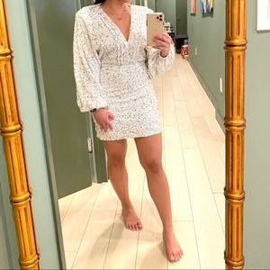 NEW WITH TAGS! White Retrofete sequined chiffon mini dress. Exclusively sold at Net-A-Porter only!